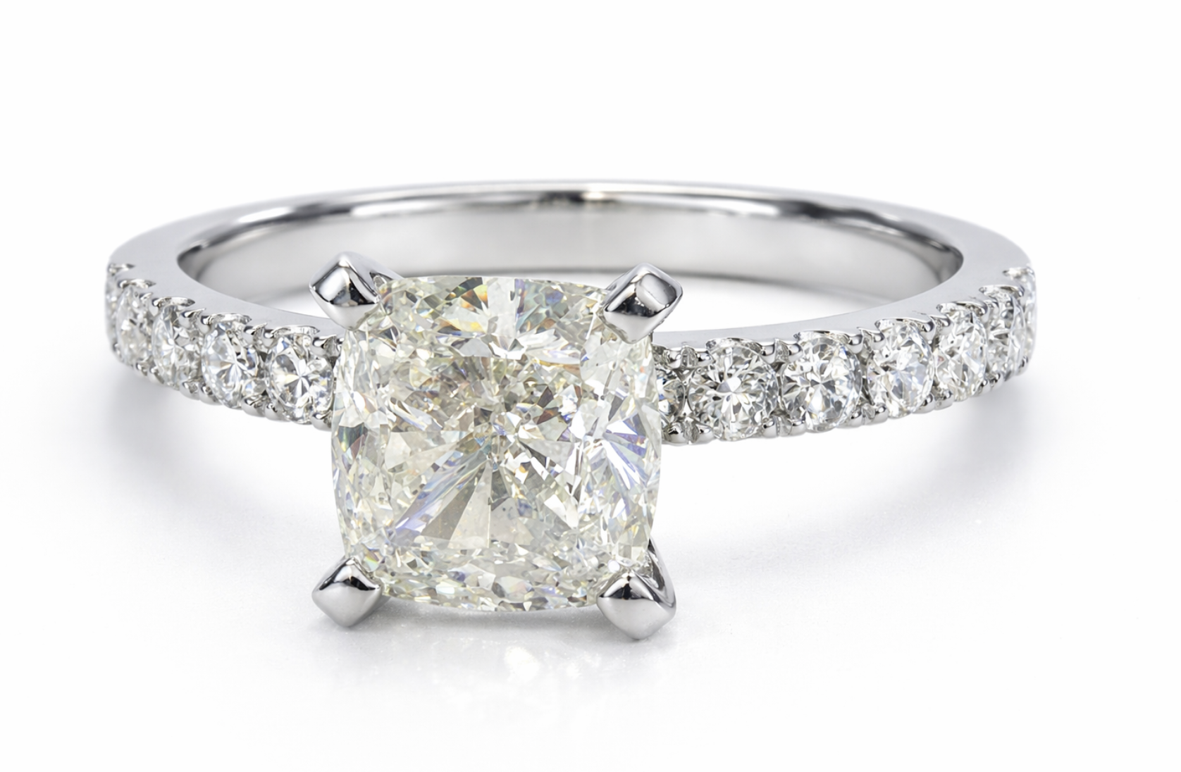 - This style is usually in stock and can be set with almost any shape or size center stone within a few days time.